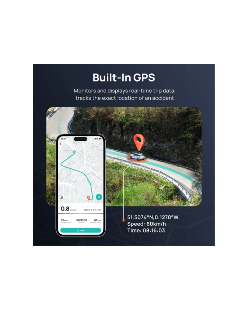 - Built-in GPS: Monitors real-time trip data and tracks the exact location if an accident happens.