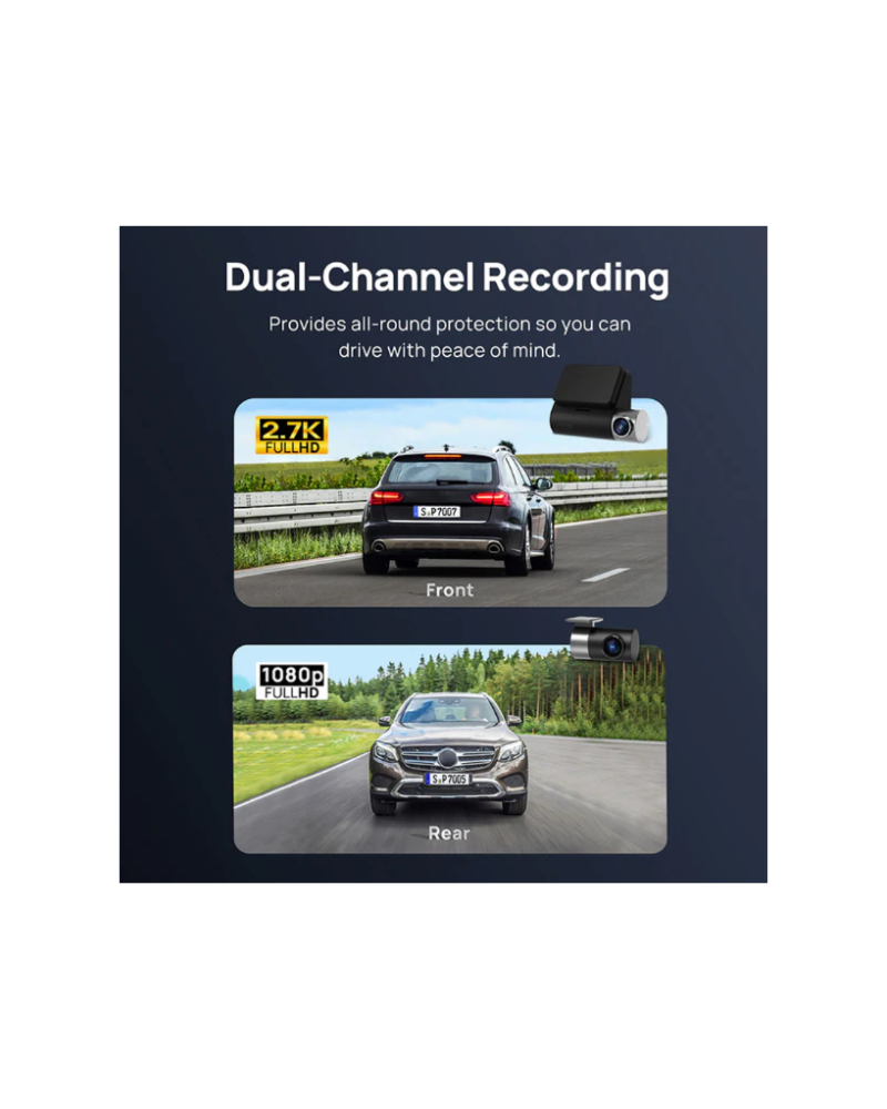 - Dual-channel Clear Recording: Front 1944P HD + rear 1080P provide all-round protection especially in rear end collision disputes.