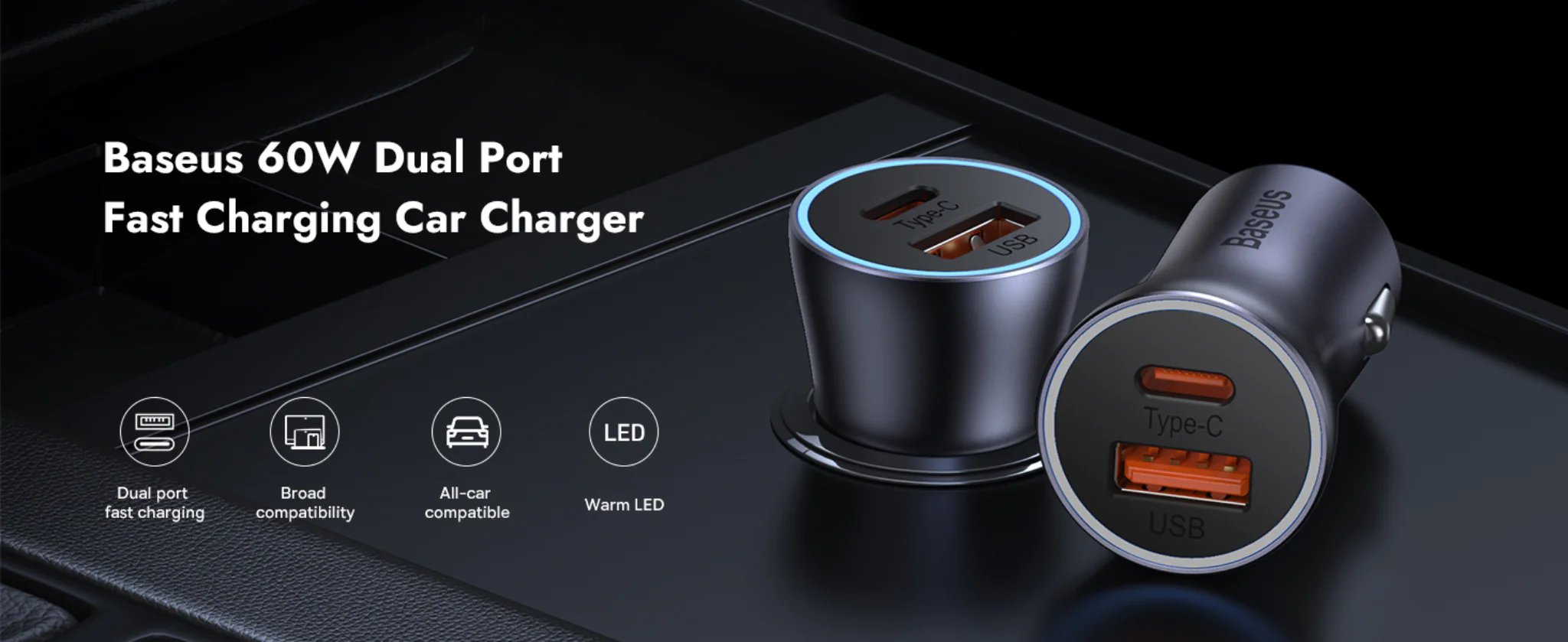 - Porta e dyfishtë: Baseus 60W Car Charger ka dy porta të ngarkimit, një portë USB-C PD (Power Delivery) dhe një portë USB-A, që ofrojnë mundësinë për të karikuar dy pajisje në të njëjtën kohë. Porta USB-C PD është e aftë të ofrojë karikim të shpejtë për pajisje të mbështetura me teknologjinë PD.