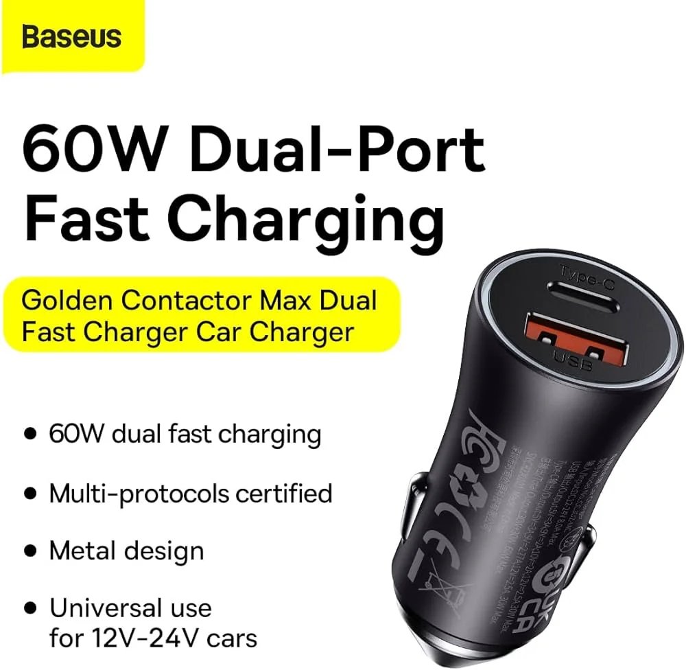 Baseus 60W Car Charger është një karikues për makinë i fuqishëm, i cili është i projektuar për të ofruar karikim të shpejtë dhe efikas për pajisjet mobile ndërkohë që jeni në udhëtim me makinën tuaj.